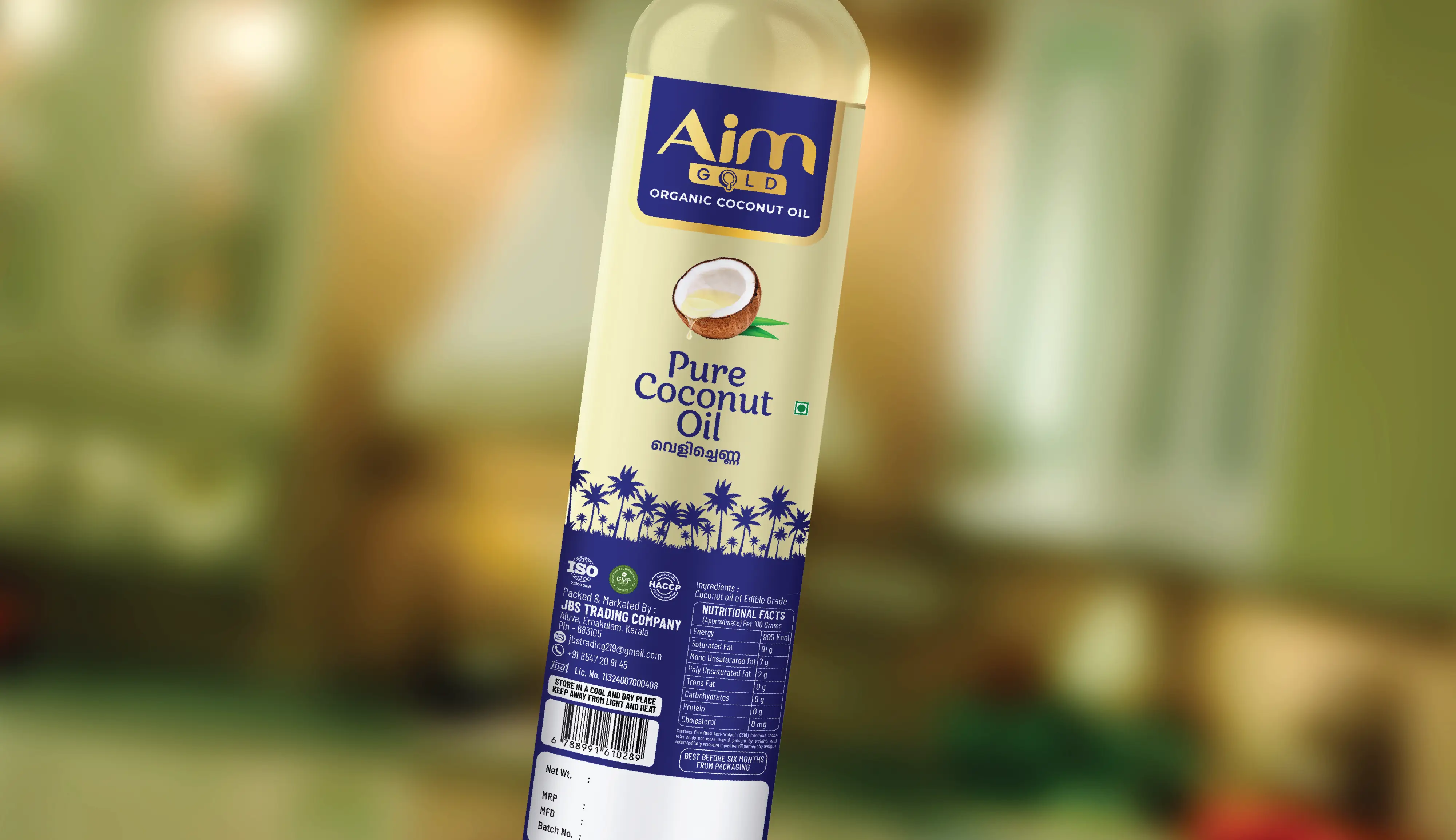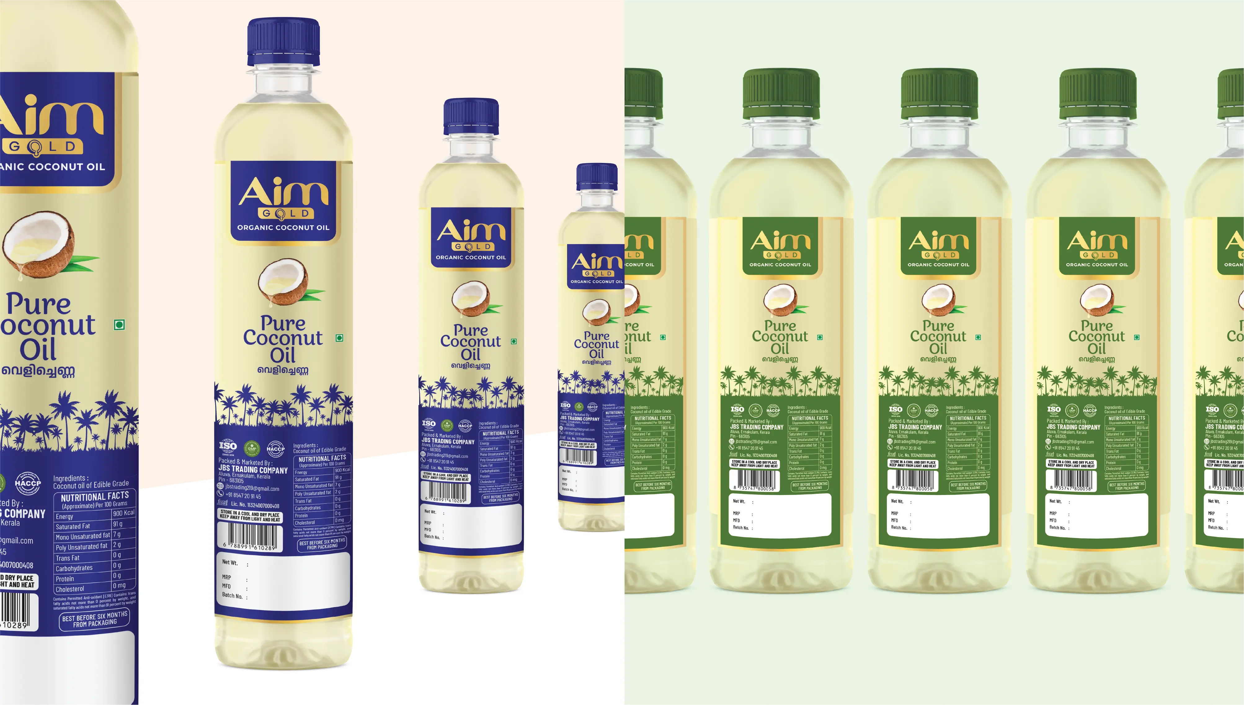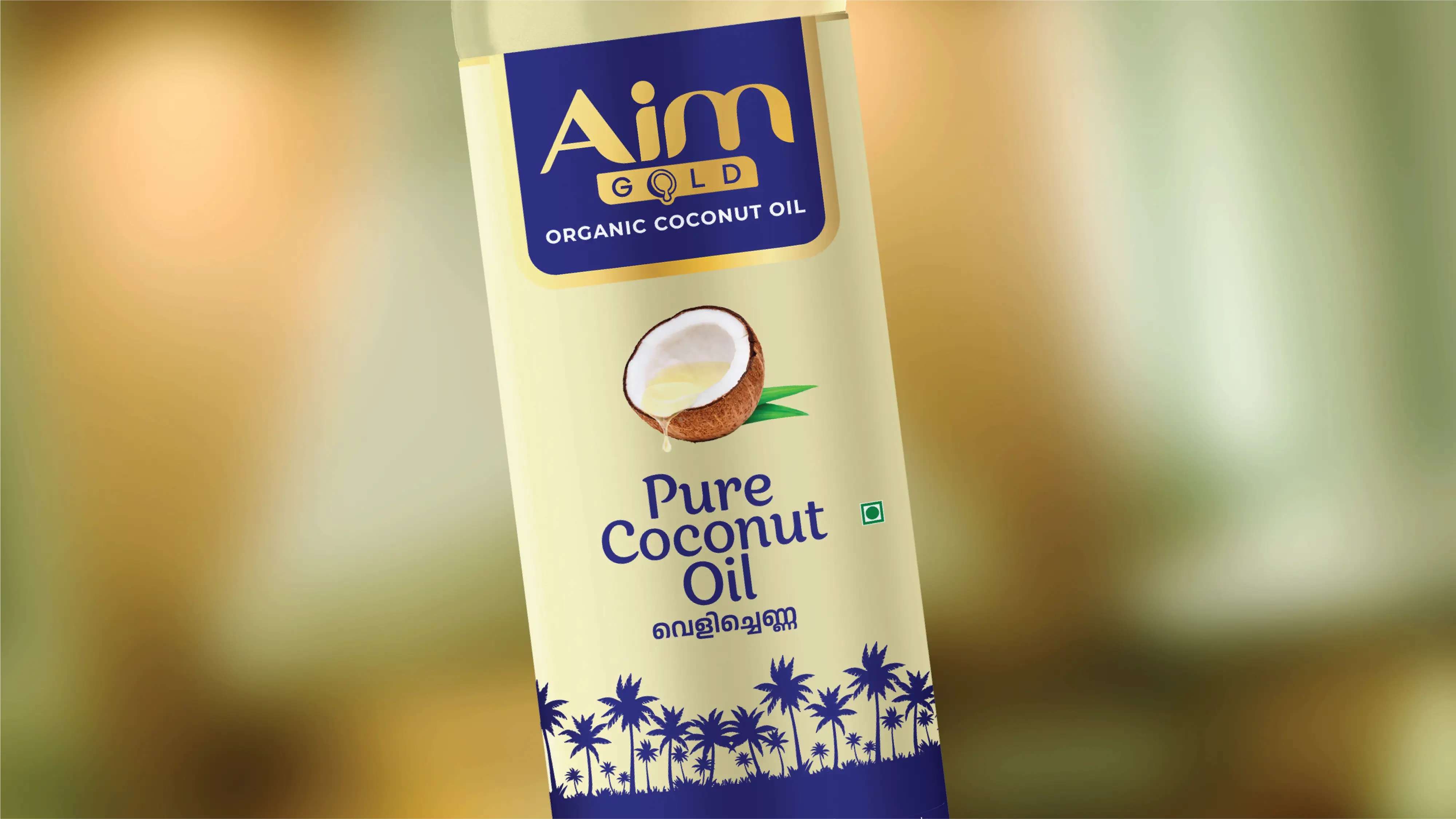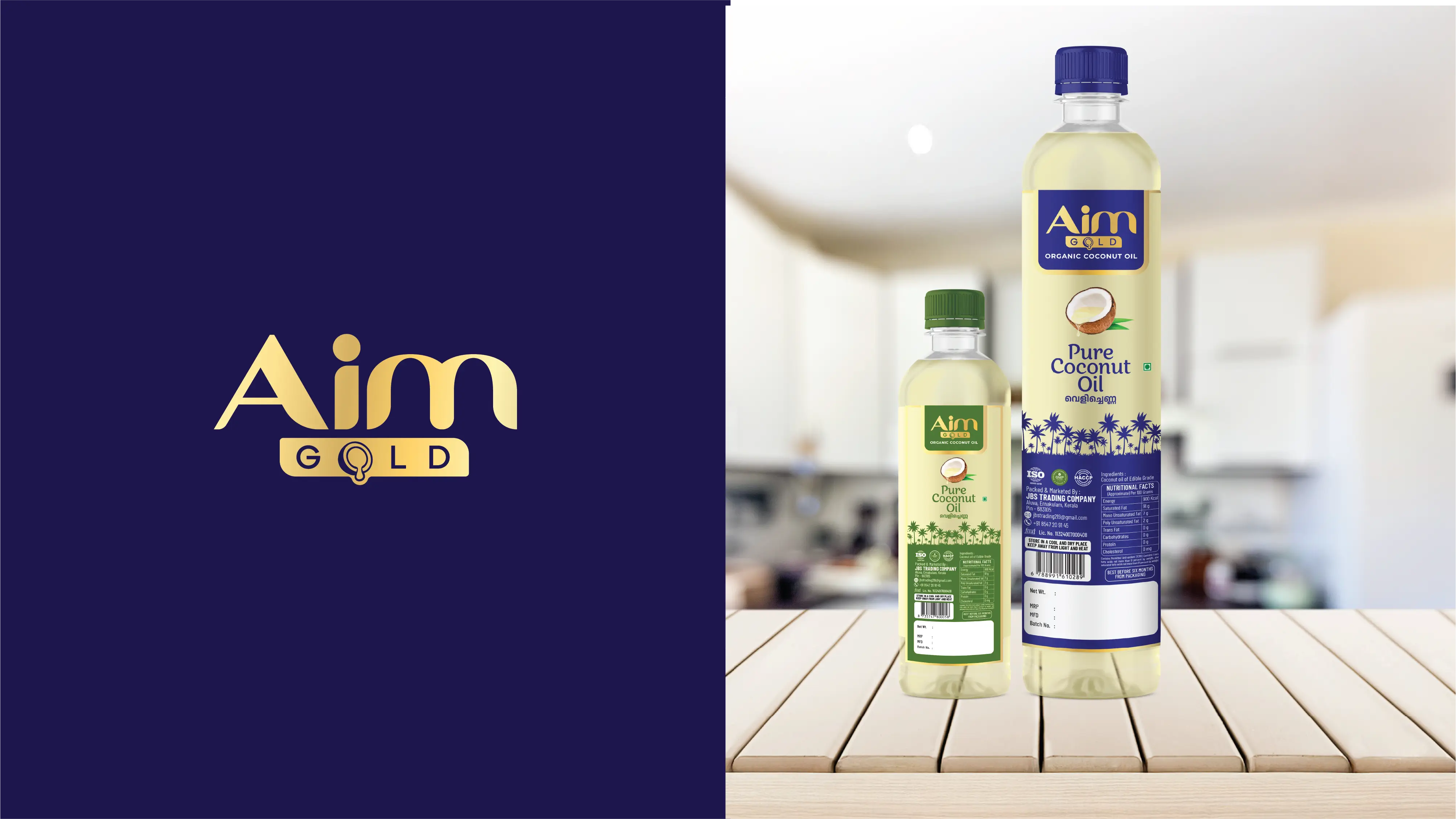 In the heart of Kerala, India, where lush coconut groves sway to the rhythm of tradition, Capt. Branding Company steered a rebranding journey for AIM GOLD Organic Coconut Oil. Our team envisioned a packaging that echoes the richness of Kerala's coconut heritage, with a touch of royal elegance. The result was a stunning rebrand that elevates both the brand and the product to a league of premium choices. With a palette of regal gold and blue colours and silhouettes of coconut trees that whisper tales of the land, our thoughtful design brought the product to life. The transparent sides of the packaging offer a glimpse into the pure, golden goodness within, accentuating the product's authenticity. This rebranding and packaging design by Capt. Branding Company beautifully marries tradition with a premium aesthetic.