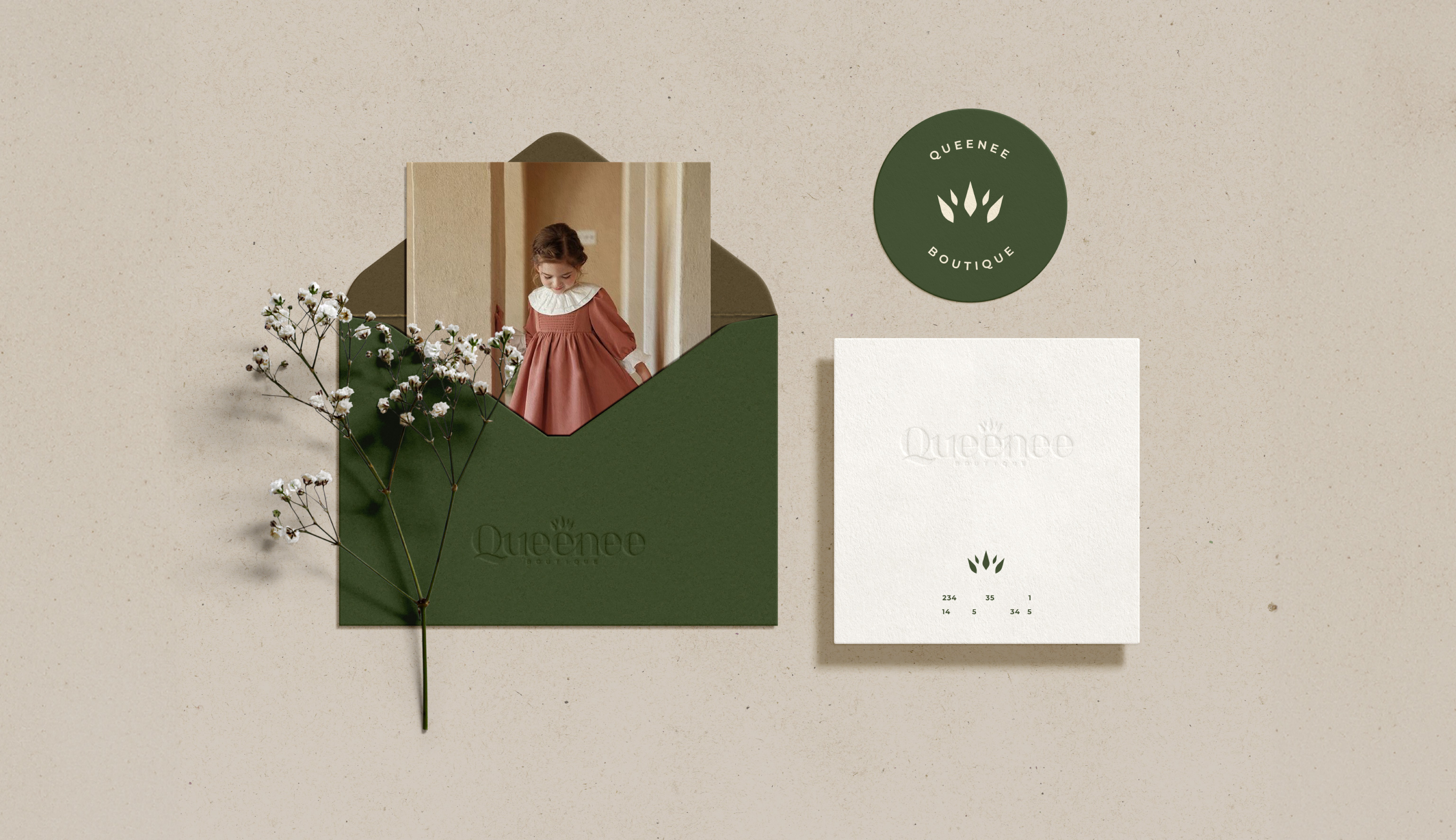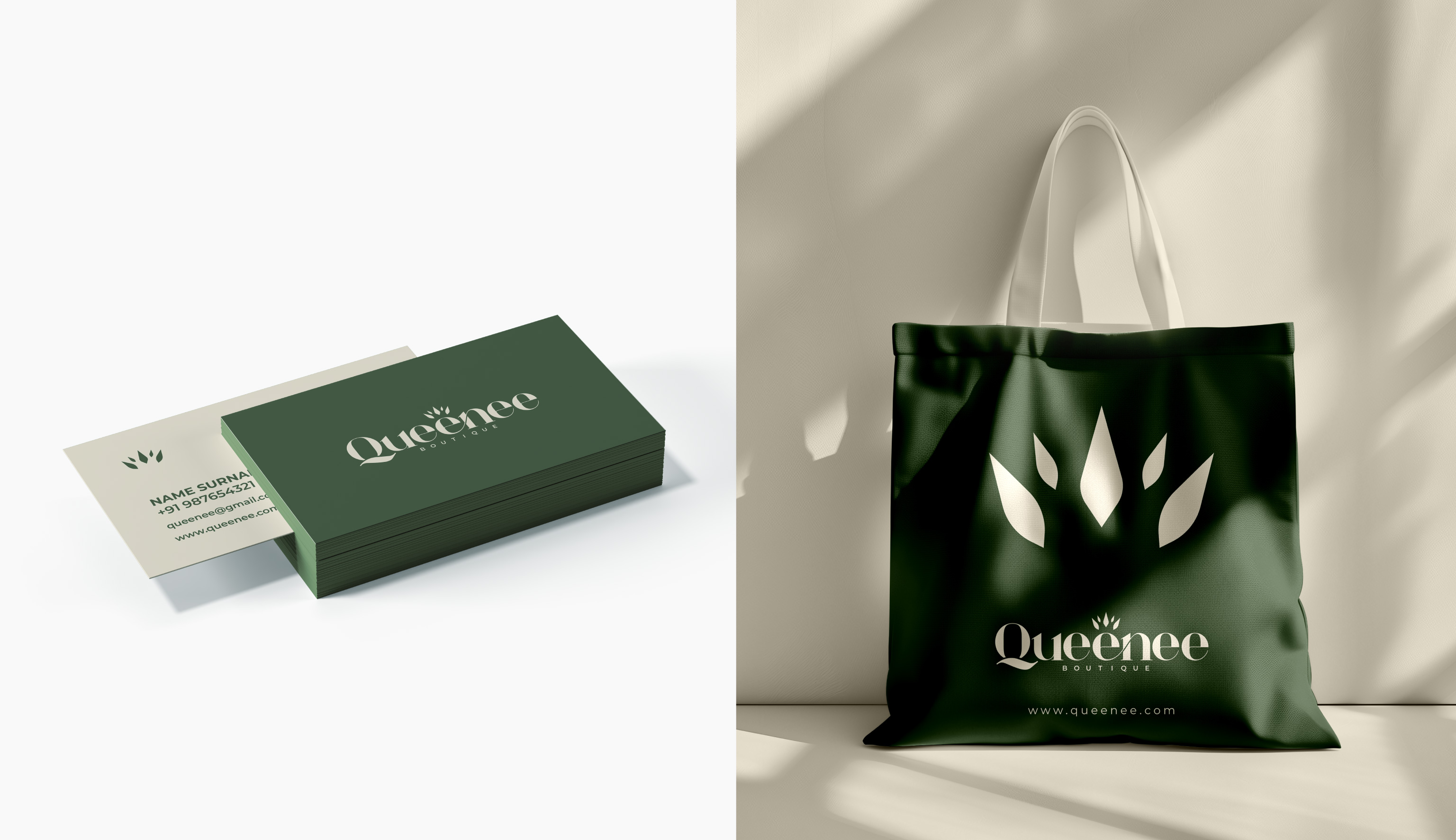 For QUEENEE BOUTIQUE, Capt. Branding Company tailored a regal branding that embodies timeless grace. The design draws inspiration from the poise of modern royalty- effortlessly confident and graceful. A rich military green pairs beautifully with a soft cream-off-white palette, creating a balance between power and poise. The typography completes the look, adding a touch of luxury that mirrors the brand’s fashion ethos. Every visual element designed by Capt. Branding Company, assisted to reflect the boutique’s spirit-strong, elegant and confident in its craft-making QUEENEE not just another brand, but a statement of modern regality.