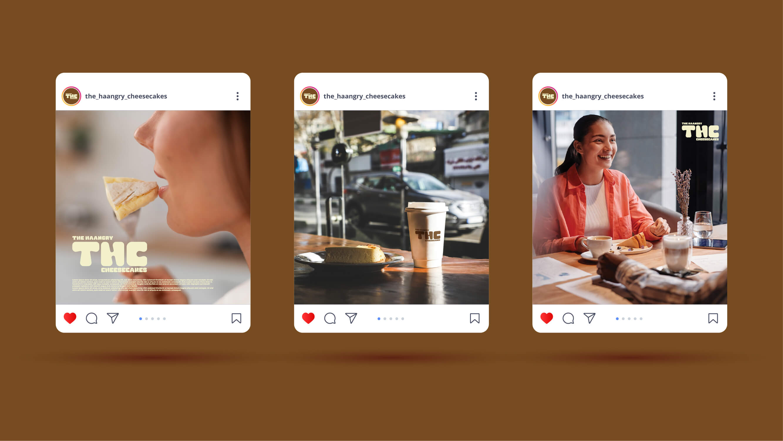 For THE HAANGRY CHEESECAKES, Capt. Branding Company developed a distinctive brand identity that blends indulgence with warmth. Rooted in the idea of turning cravings into a moment of joy, the visual language strikes a balance between playful charm and refined simplicity. The palette of rich brown and beige reflects the comfort of baked goodness, while the bold typography adds a modern, confident edge – mirroring the brand’s youthful energy. The logo design captures the brand’s quirky spirit with a visual simplicity that’s instantly memorable. Every element was designed to convey the creamy, rich, and irresistible character of cheesecakes, making the brand look good as much as it tastes.