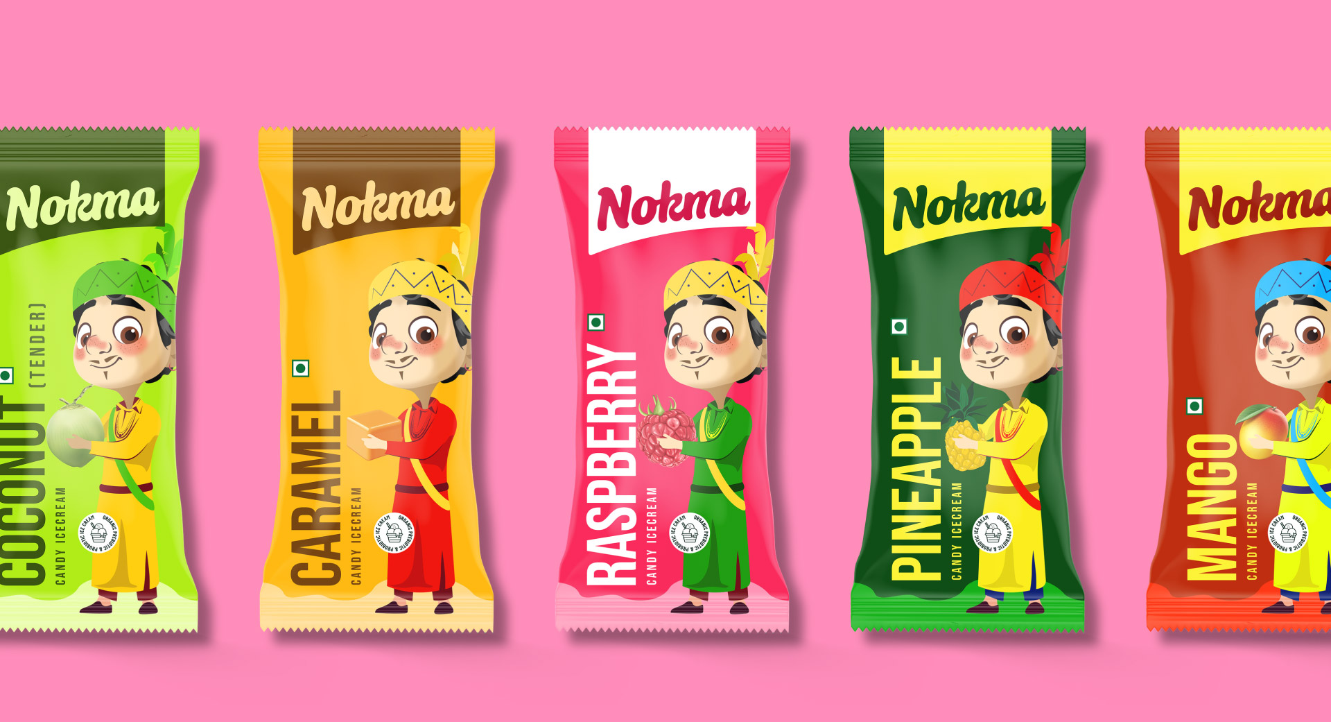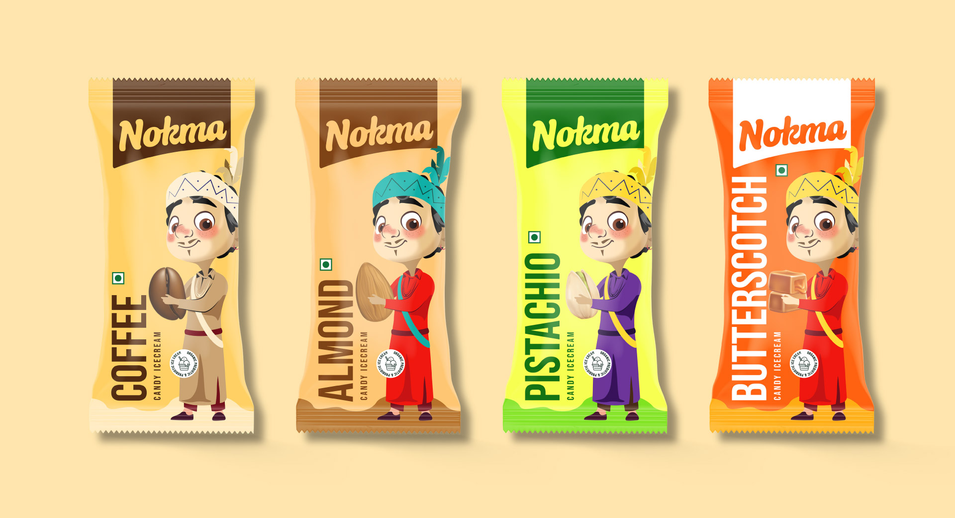 Capt. was tasked with creatively designing and carefully developing a full packaging ice cream suite for NOKMA. As a tribute to the dedication of thousands of farmers in Meghalaya, we brought in the character of a farmer in NOKMA’s ice cream cartons. Like a wizard, he shows you what flavour comes in these cartons. Different from the new normal of pastels, we chose the peppy colours.