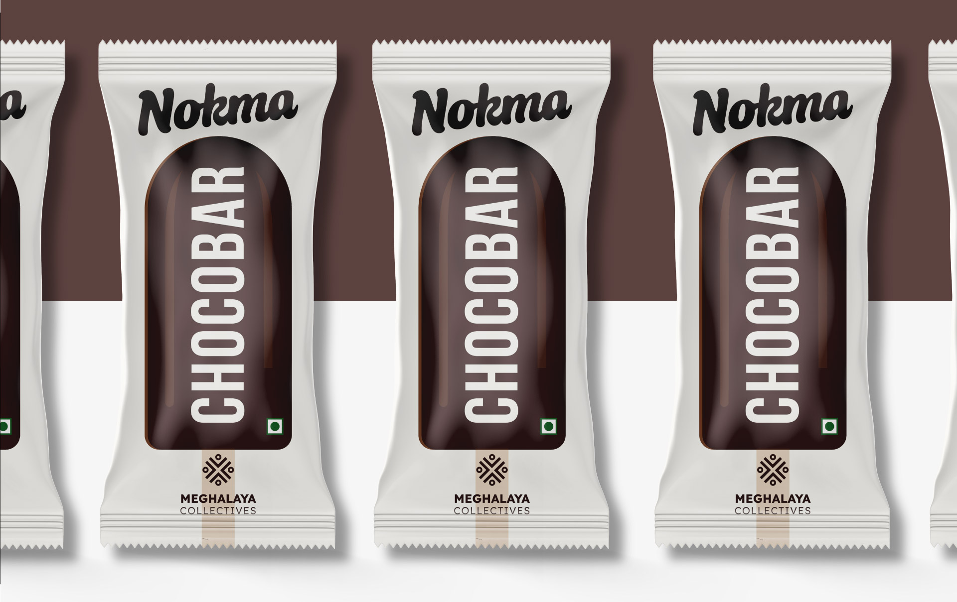 On the pack, we used a deep brown to indicate the chocolate and a creamy white to imply the milk. These colours also translate the quality of the ingredients used in making NOKMA’s chocobar. Below the brown is a light shade symbolizing the chocobar stick. We’re happy developing a simple, precise and elegant packaging.
