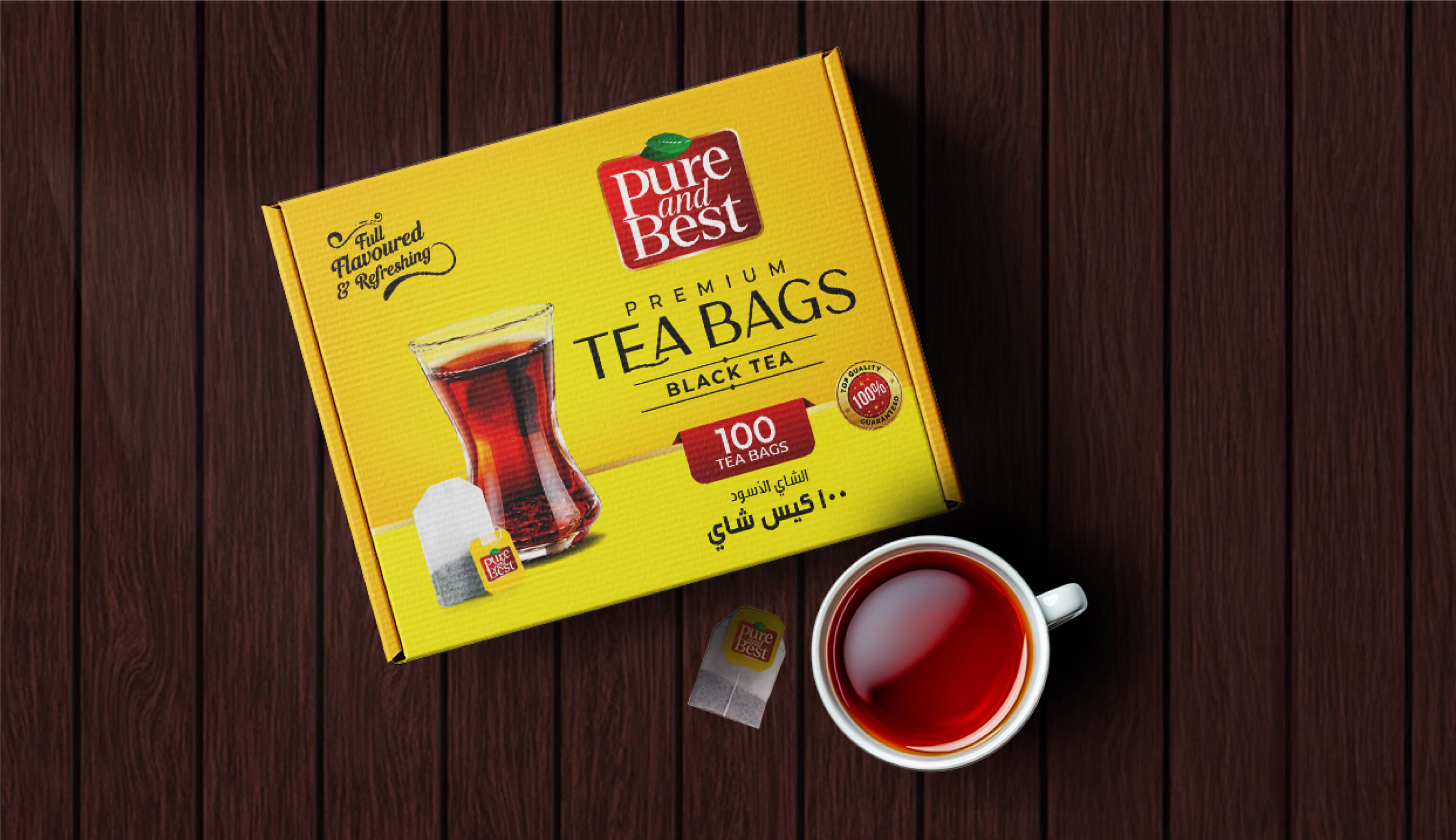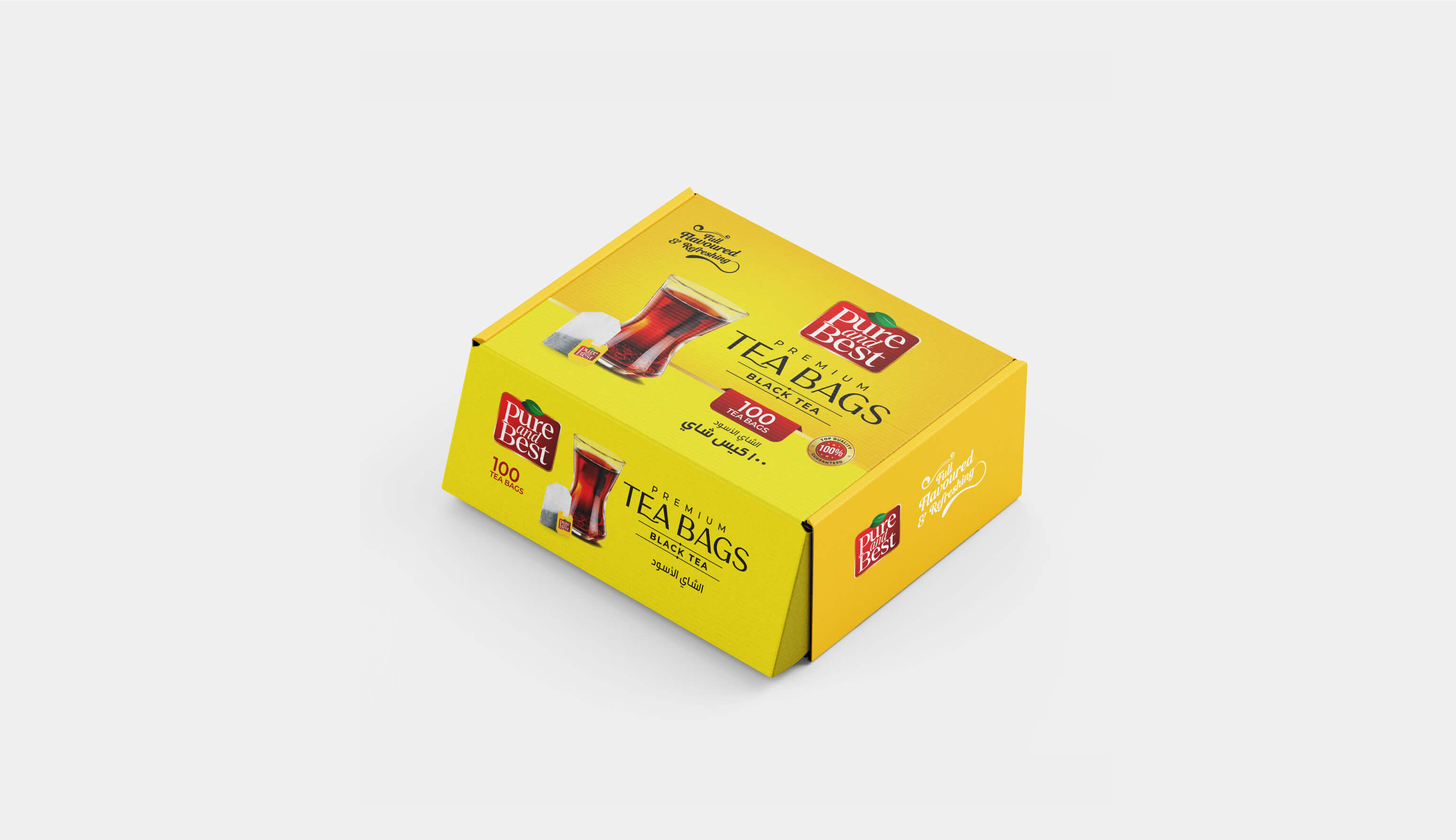 In the sun-kissed lands of the GCC, where traditions blend with modern flair, PURE AND BEST's Premium Tea Bags steps into the spotlight with packaging design by Capt. Branding Company. We wove a tale of warmth and comfort in every brew, packaging this tea in a burst of vibrant yellow. Like a ray of sunshine, the packaging radiates energy and invitation, drawing in those who crave a full-flavoured escape in a cup. In this tale of tea, Capt. Branding company brings forth captivating visuals, telling a story of quality and promise. with our packaging design, the product finds its way to where stories are shared over steaming cups, and moments are savoured with every sip.