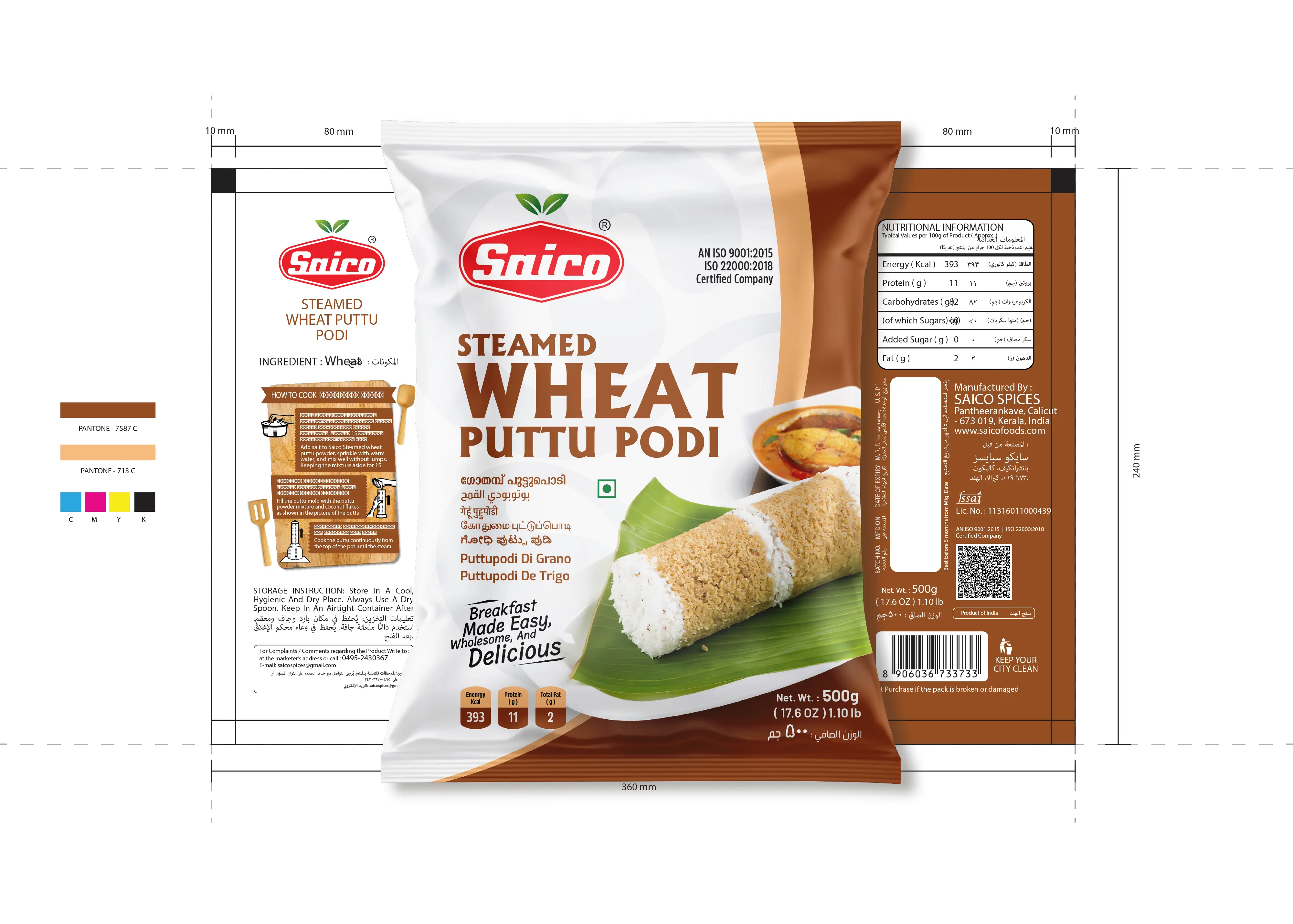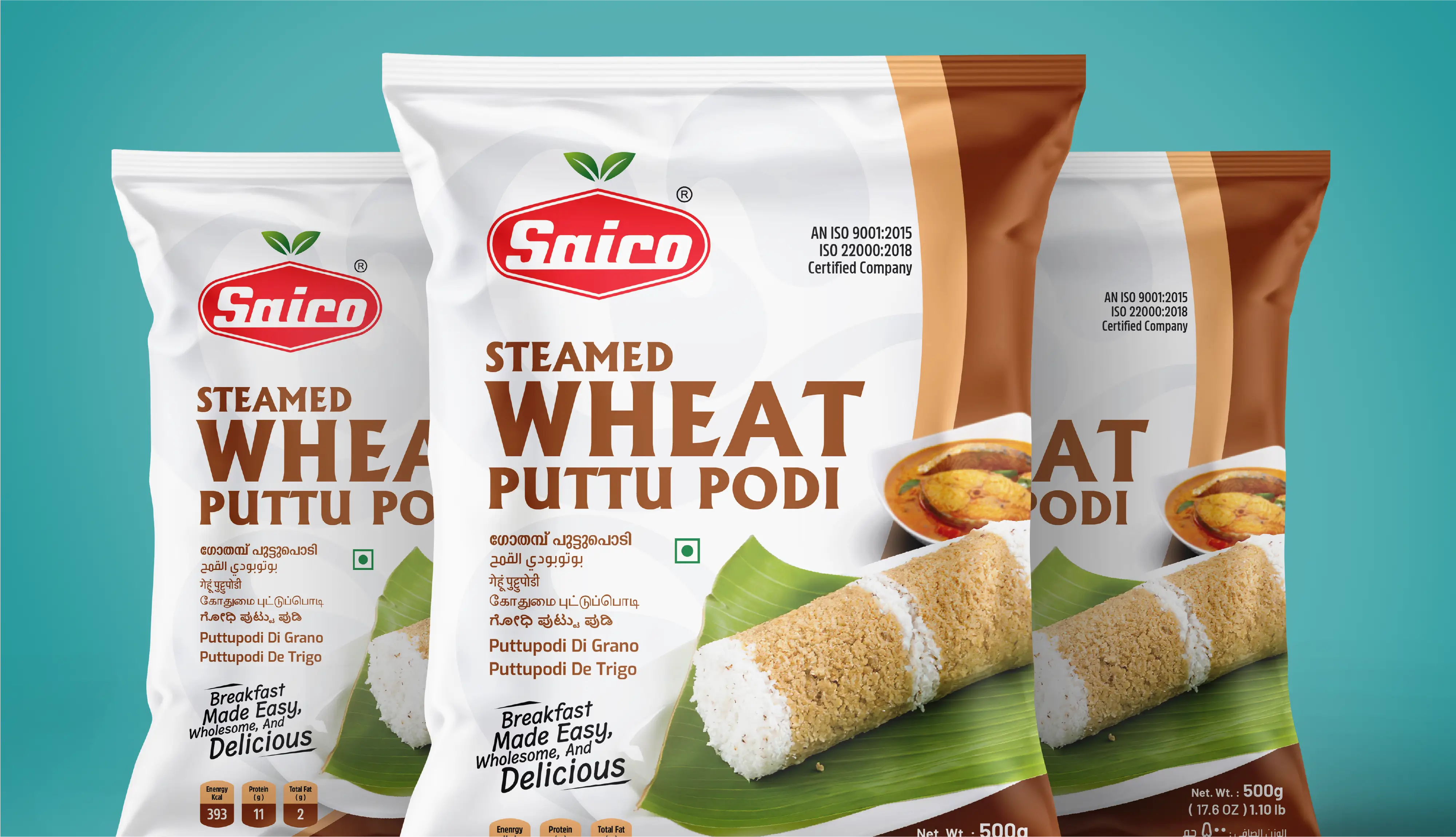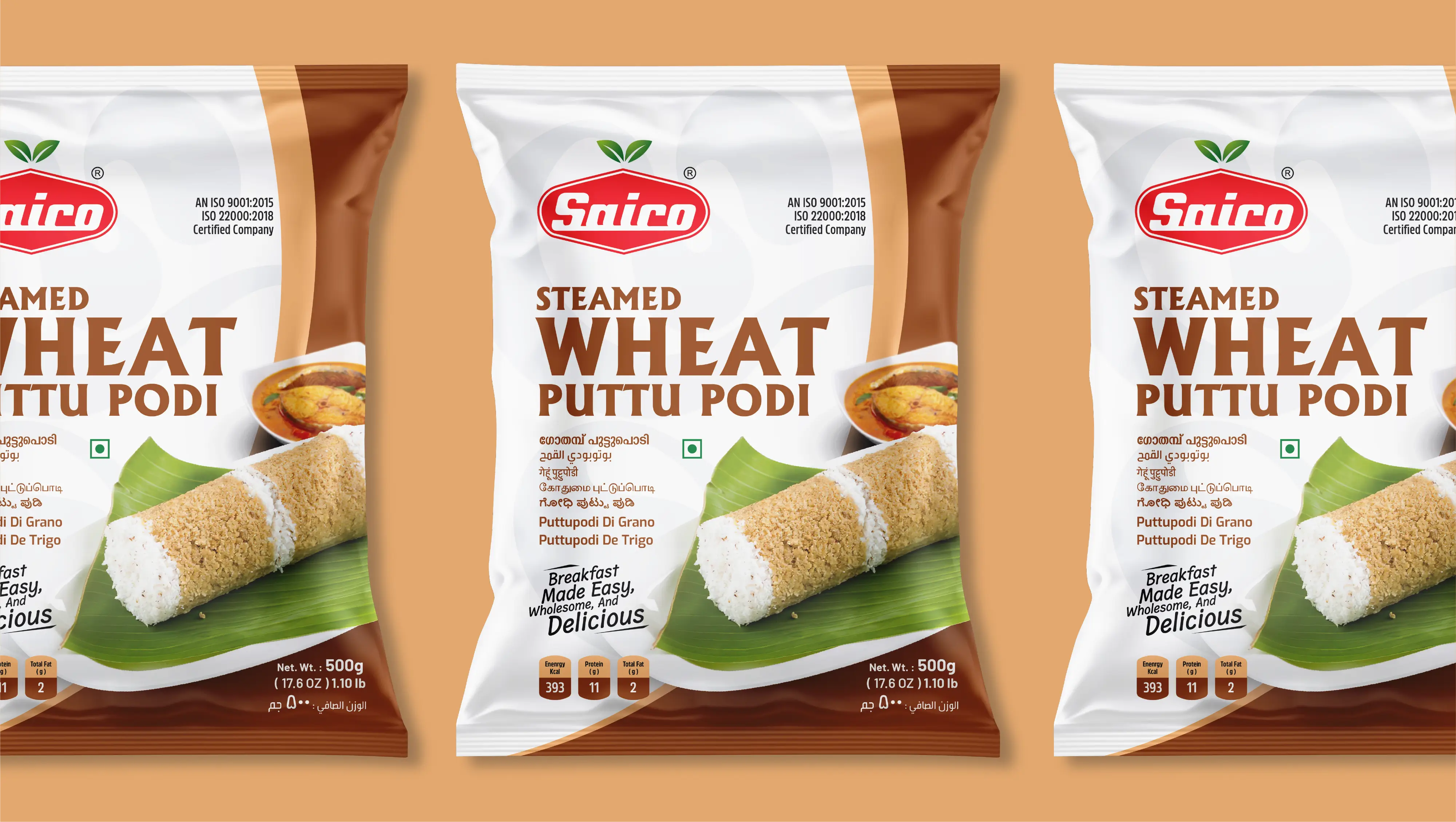 Capt. Branding Company executed the packaging for SAICO Steamed Wheat Puttu Podi with a focus on simplicity, freshness, and appetite appeal. The design draws from an earthy colour palette, echoing the wholesome essence of the product itself. Clean typography and a structured layout bring clarity, and confidence. Balancing bold fonts, appealing hues, and appetizing imagery, Capt. Branding Company ensured that the packaging stands out on the shelf, while staying true to the brand’s authentic identity. The result is a design that feels warm, trustworthy, and inviting - one that elevates the brand’s presence in a highly competitive market.
