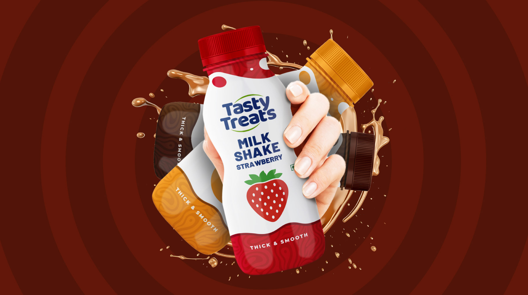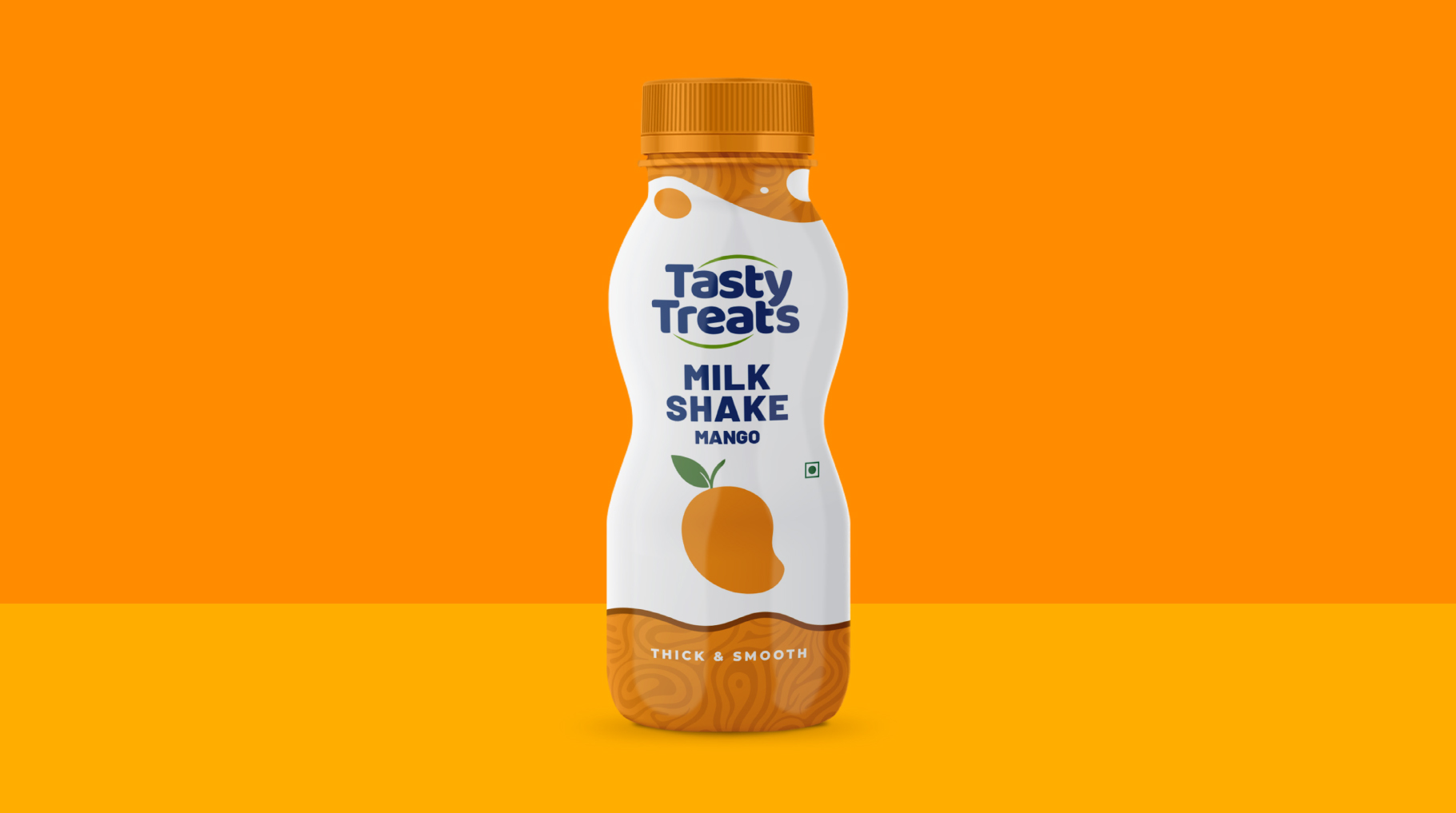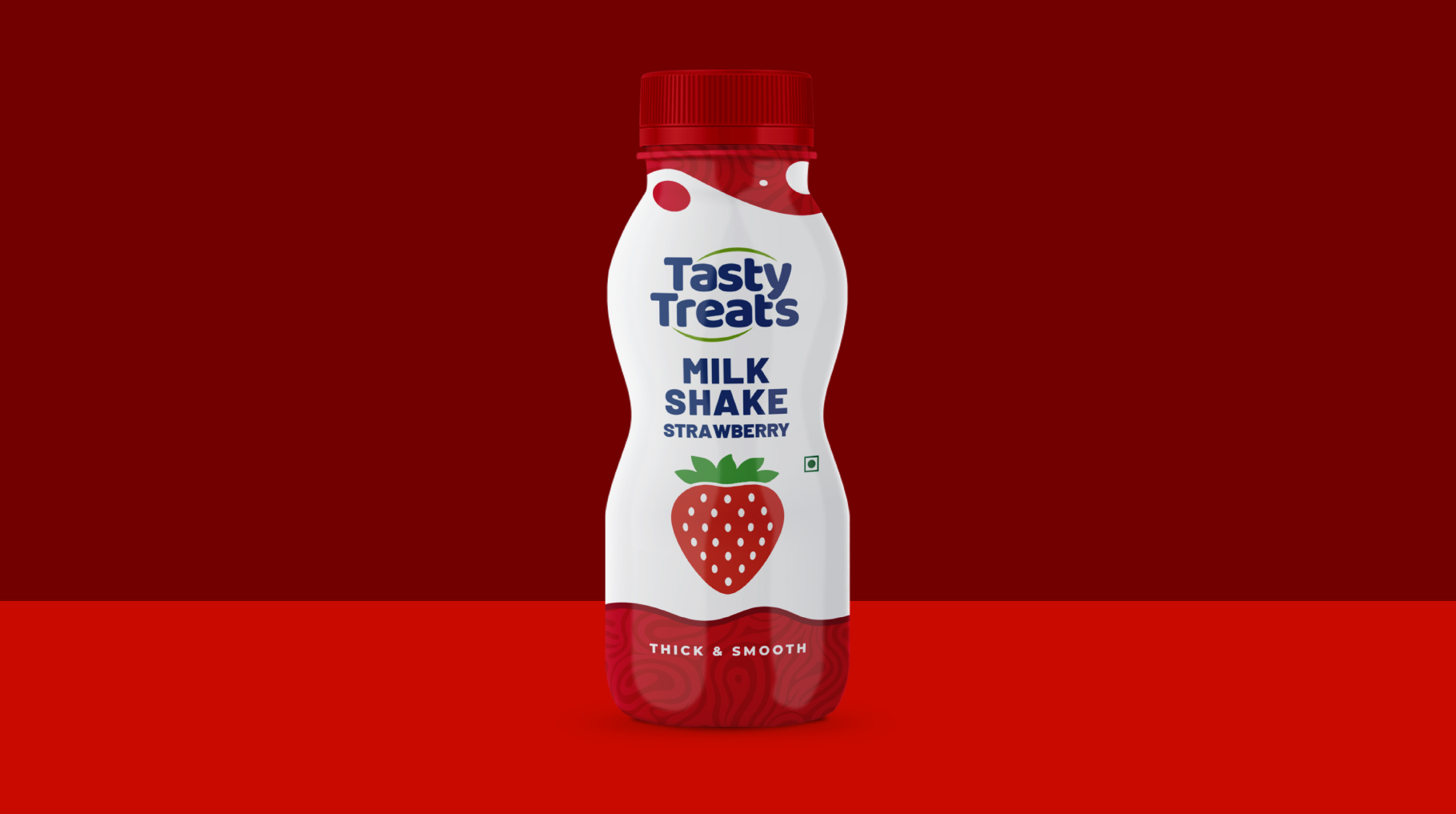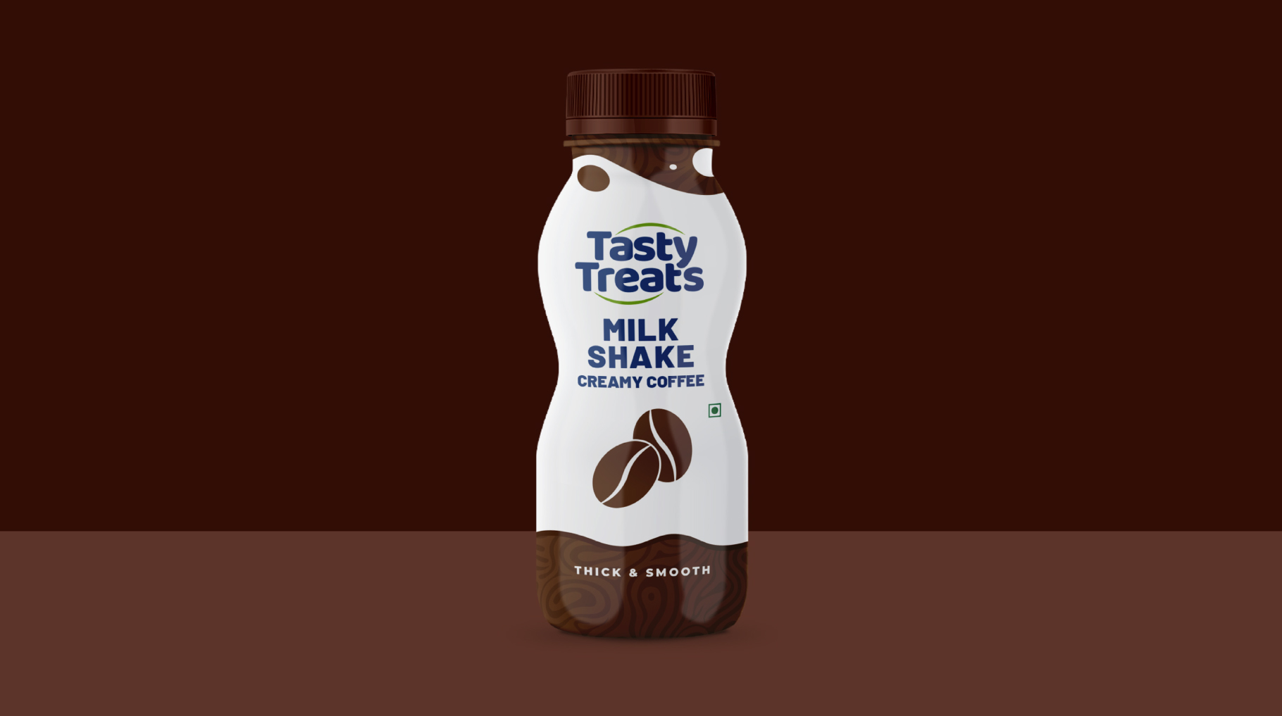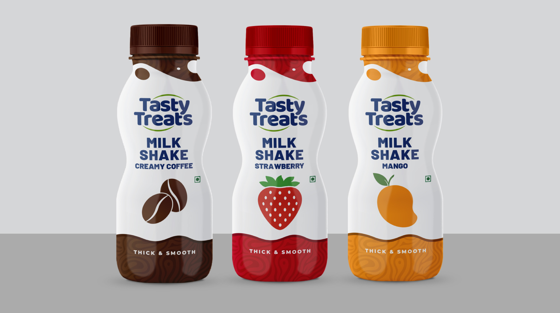 The packaging design for Tasty Treats Flavored Milkshake embodies a paradigm of visual appeal, synergizing vibrant chromatics and whimsical illustrations to create a truly distinctive brand identity. Each flavor variant boasts a bespoke visual motif - a luscious strawberry for Strawberry Bliss, a stylized coffee cup for Coffee Delight, and a succulent mango slice for Mango Magic - juxtaposed against a creamy white backdrop that subtly evokes the velvety texture of the milkshake. The Tasty Treats logo assumes a prominent position at the apex of the bottle, complemented by the flavor designation in a bold, sans-serif typography that exudes modernity and approachability. The resultant design is a masterful amalgam of visual elements, expertly calibrated to captivate consumers’ attention and precipitate an emotive connection with the brand.